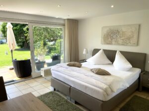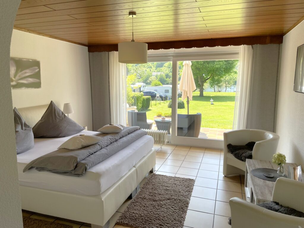 Alle Zimmer sind mit modernen TV-Geräten ausgestattet und verfügen über einen eigenen Freisitz, von dem aus Sie den direkten Blick auf die Mosel und die umliegende Natur in vollen Zügen genießen können.
